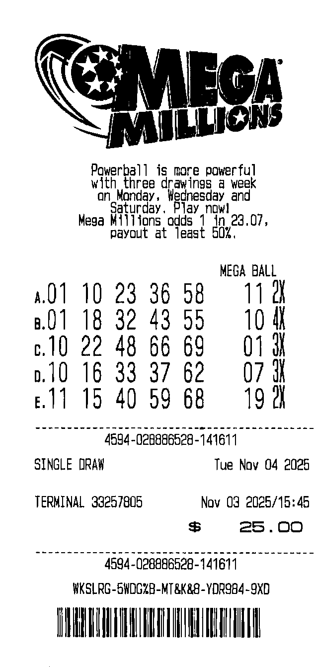 | 01, 10, 23, 36, 58 - 11 (x2) |
